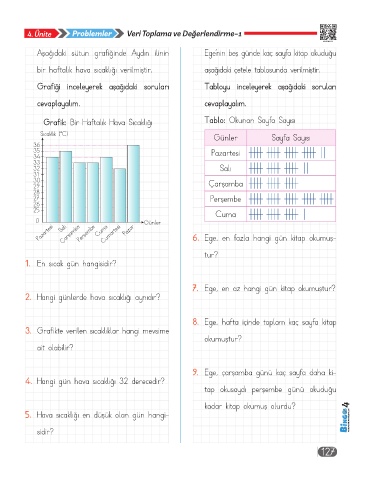 Grafik: Bir Haftalık Hava Sıcaklığı Tablo: Okunan Sayfa Sayısı