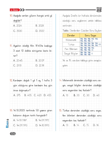 12. Kardeşim doğalı 1 yıl 1 ay 1 hafta 3 14. Matematik dersinden çözdüğü soru sa-