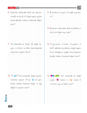 9. Altı basamaklı en büyük tek doğal sa- 13. “8 yüz binlik + 6 binlik + 8 yüzlük + 3