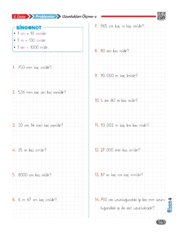 6. 6 m 67 cm kaç cm’dir? 14. 750 cm uzunluğundaki ip kaç mm uzun- 4