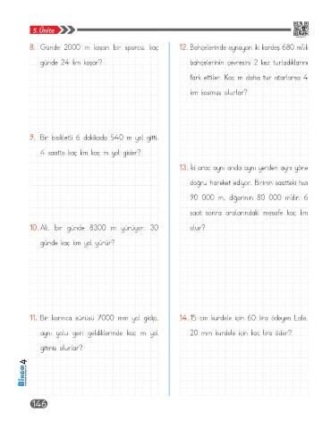 8. Günde 2000 m koşan bir sporcu, kaç 12. Bahçelerinde oynayan iki kardeş 680 m’lik