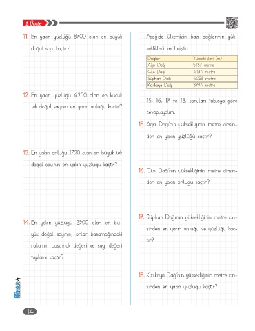 18. Kızılkaya Dağı’nın yüksekliğinin metre cin-