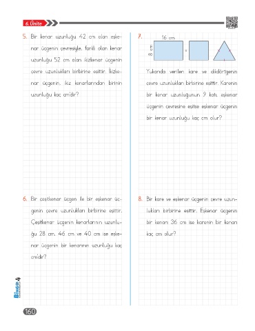 6. Bir çeşitkenar üçgen ile bir eşkenar üç- 8. Bir kare ve eşkenar üçgenin çevre uzun-