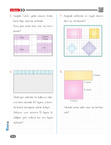 5. Aşağıda Cem’in yatak odasının krokisi, 7. Aşağıdaki şekillerden en büyük olanının