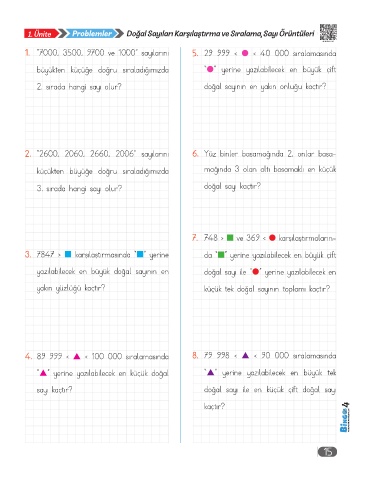 1. Ünite Problemler Doğal Sayıları Karşılaştırma ve Sıralama, Sayı Örüntüleri