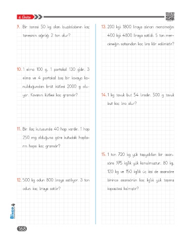 9. Bir tanesi 50 kg olan buzdolabının kaç 13. 200 kg’ı 1800 liraya alınan mercimeğin