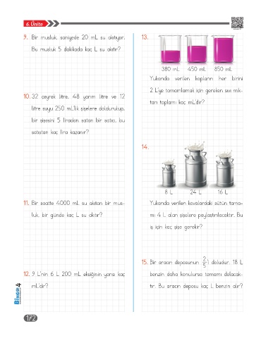 9. Bir musluk, saniyede 20 mL su akıtıyor. 13.