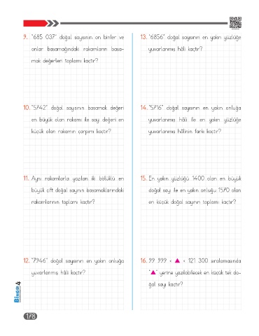 12. “7946” doğal sayısının en yakın onluğa 16. 99 999 < ▲ < 121 300 sıralamasında