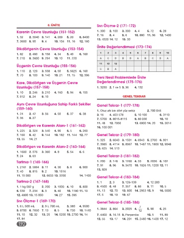 7. 160 8. 42 9. 144 10. 182 11. 144 12. 77 Genel Tekrar-2 (179-180)