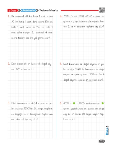 1. Bir otomobil 70 km hızla 1 saat, sonra 4. “2314, 5076, 3018, 4259” sayıları bü-