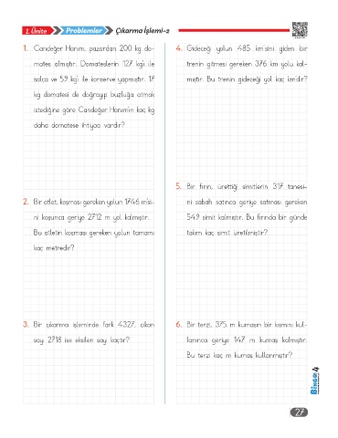 3. Bir çıkarma işleminde fark 4327, çıkan 6. Bir terzi, 375 m kumaşın bir kısmını kul-