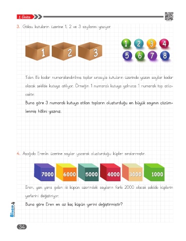 3. Göksu kutuların üzerine 1, 2 ve 3 sayılarını yazıyor.