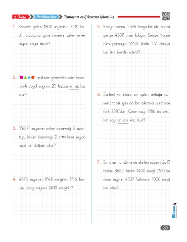 2. Ünite Problemler Toplama ve Çıkarma İşlemi-2