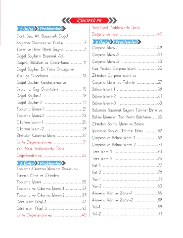 Dört İşlem (Yaş)-1 ..........................................41 Alışveriş, Kâr ve Zarar-2 ............................87