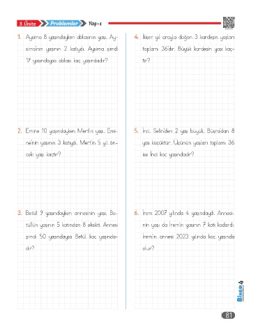 tül’ün yaşının 5 katından 8 eksikti. Annesi nin yaşı da İrem’in yaşının 7 katı kadardı.