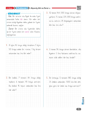 3. Ünite Problemler Alışveriş, Kâr ve Zarar-1
