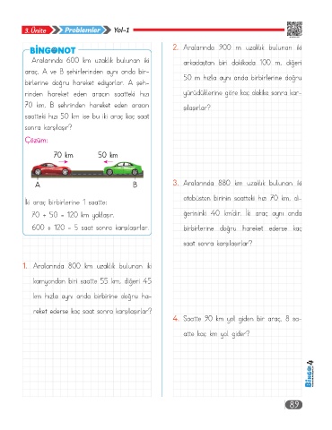 4. Saatte 90 km yol giden bir araç, 8 sa-