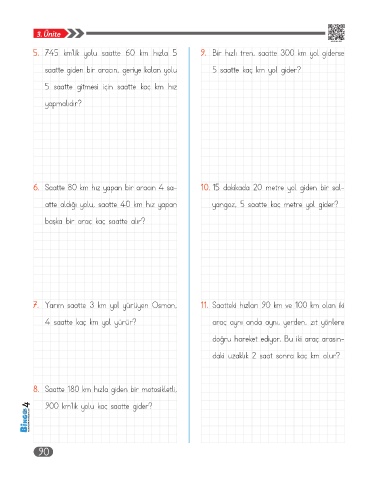 5. 745 km’lik yolu saatte 60 km hızla 5 9. Bir hızlı tren, saatte 300 km yol giderse