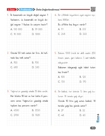 1. İki basamaklı en büyük doğal sayının 1 4. Bir çiftlikteki koyunların ayak sayıları top-