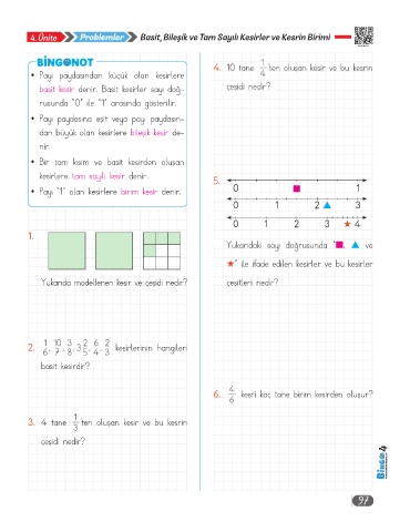 4. Ünite Problemler Basit, Bileşik ve Tam Sayılı Kesirler ve Kesrin Birimi