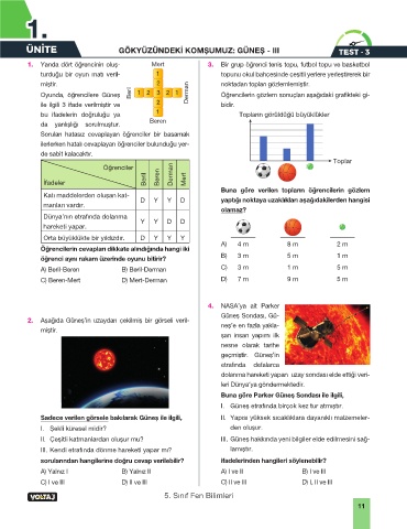ÜNİTE GÖKYÜZÜNDEKİ KOMŞUMUZ: GÜNEŞ - III TEST - 3