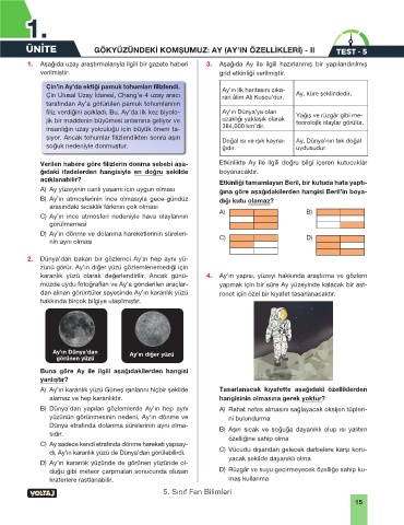 ÜNİTE GÖKYÜZÜNDEKİ KOMŞUMUZ: AY (AY’IN ÖZELLİKLERİ) - II TEST - 5