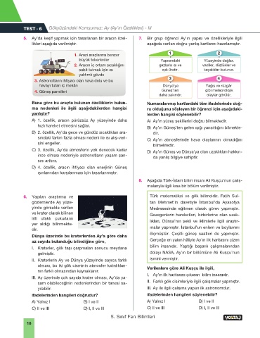5. Ay’da keşif yapmak için tasarlanan bir aracın özel- 7. Bir grup öğrenci Ay’ın yapısı ve özellikleriyle ilgili