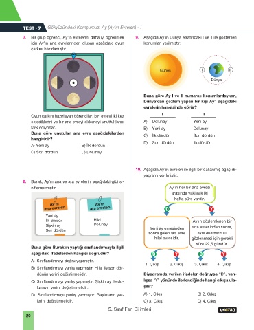 TEST - 7 Gökyüzündeki Komşumuz: Ay (Ay’ın Evreleri) - I