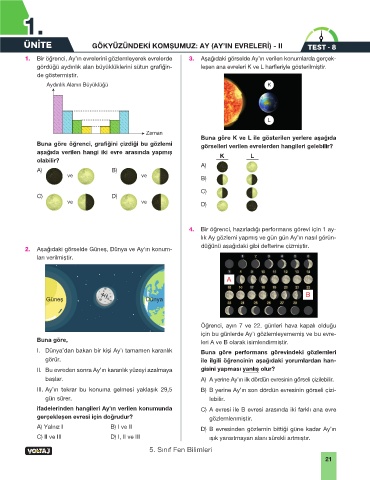 ÜNİTE GÖKYÜZÜNDEKİ KOMŞUMUZ: AY (AY’IN EVRELERİ) - II TEST - 8
