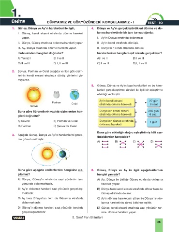 ÜNİTE DÜNYA’MIZ VE GÖKYÜZÜNDEKİ KOMŞULARIMIZ - I TEST - 10