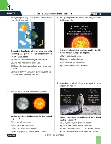 1. Bir öğrenci gece ve gündüzü göstermek için aşağı- 3. Bir öğrenci performans görevi olarak aşağıdaki pos-