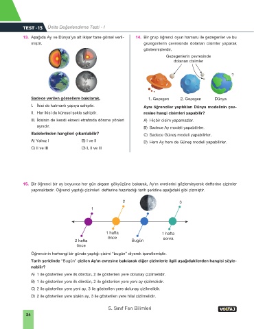 13. Aşağıda Ay ve Dünya’ya ait ikişer tane görsel veril- 14. Bir grup öğrenci oyun hamuru ile gezegenler ve bu