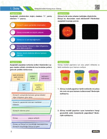 Güneş’in dönme yönü ......................................... 2. Güneş modeli yaparken oyun hamurlarını hangi