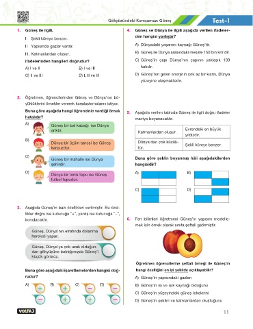 1. Güneş ile ilgili, 4. Güneş ve Dünya ile ilgili aşağıda verilen ifadeler-