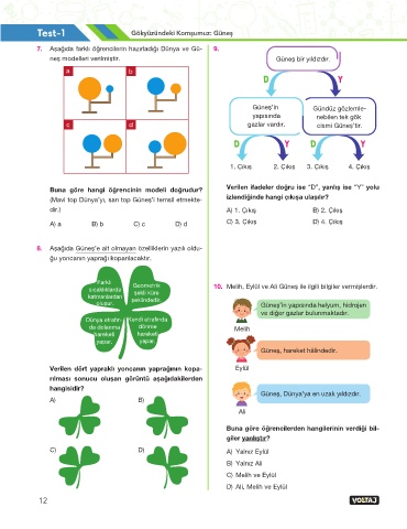 7. Aşağıda farklı öğrencilerin hazırladığı Dünya ve Gü- 9.