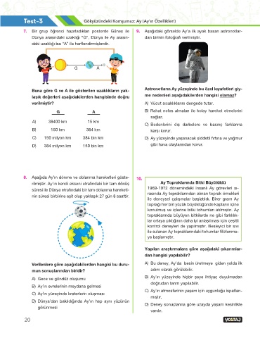Buna göre G ve A ile gösterilen uzaklıkların yak- Astronotların Ay yüzeyinde bu özel kıyafetleri giy-