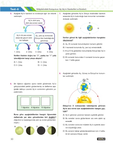 6. Bir öğrenci ağustos ayının belirli günlerinde Ay’ın X