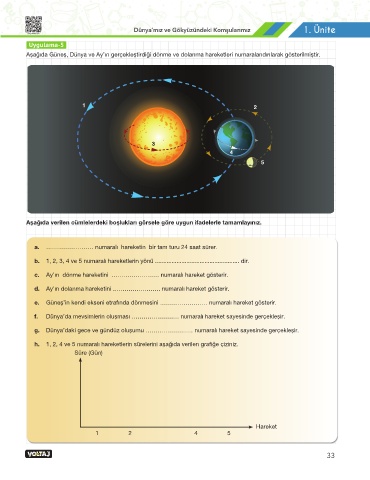 e. Güneş’in kendi ekseni etrafında dönmesini …………………… numaralı hareket gösterir.