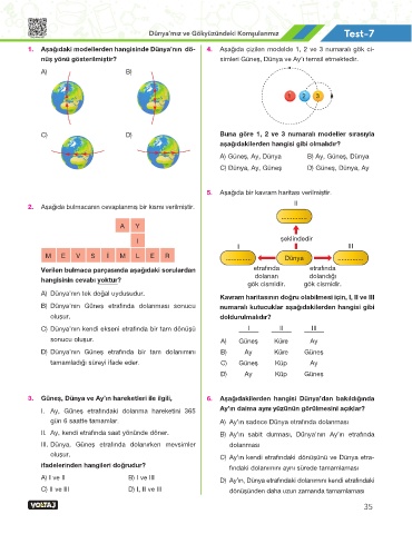 Dünya’mız ve Gökyüzündeki Komşularımız Test-7