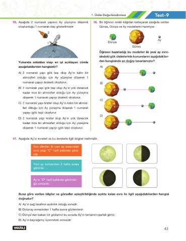 15. Aşağıda 2 numaralı yapının Ay yüzeyine düşerek 16. Bir öğrenci renkli kâğıtları katlayarak aşağıda verilen