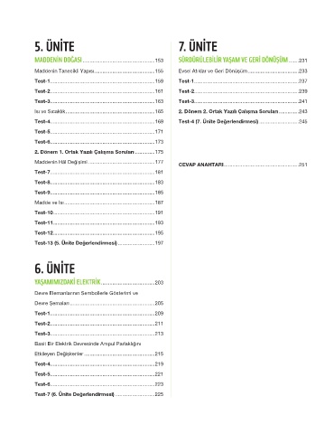 Test-7 (6. Ünite Değerlendirmesi) ............................225