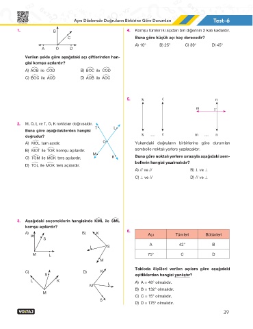 Aynı Düzlemde Doğruların Birbirine Göre Durumları Test-6