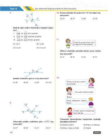 7. 10. Komşu bütünler iki açıdan biri 115° ise diğeri kaç