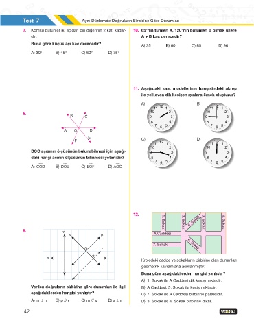 Test-7 Aynı Düzlemde Doğruların Birbirine Göre Durumları