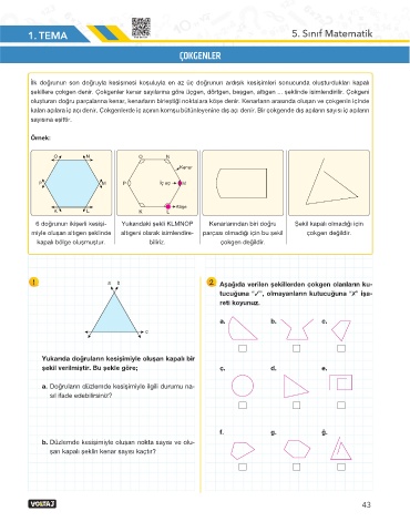 1 a b 2 Aşağıda verilen şekillerden çokgen olanların ku-