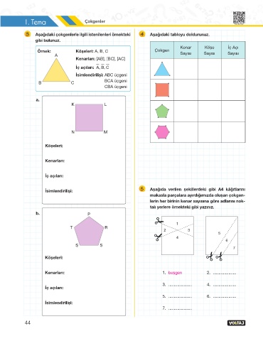 3 Aşağıdaki çokgenlerle ilgili istenilenleri örnekteki 4 Aşağıdaki tabloyu doldurunuz.