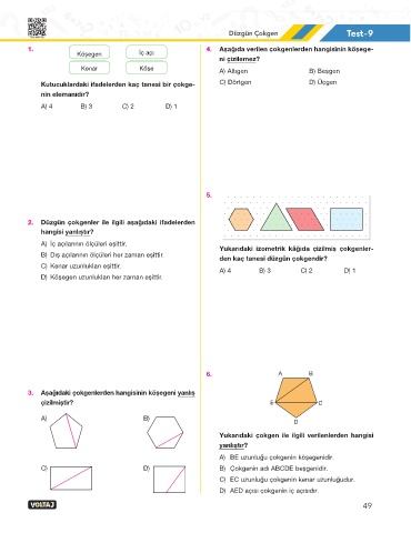 2. Düzgün çokgenler ile ilgili aşağıdaki ifadelerden