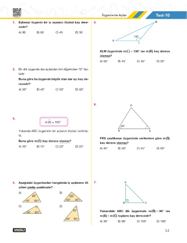 1. Eşkenar üçgenin bir iç açısının ölçüsü kaç dere- 5. M