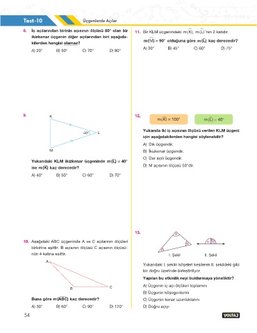 8. İç açılarından birinin açısının ölçüsü 80° olan bir 11. Bir KLM üçgenindeki mK mL ’nın 2 katıdır.