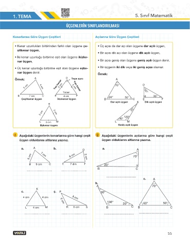 • Kenar uzunlukları birbirinden farklı olan üçgene çe- • Üç açısı da dar açı olan üçgene dar açılı üçgen,